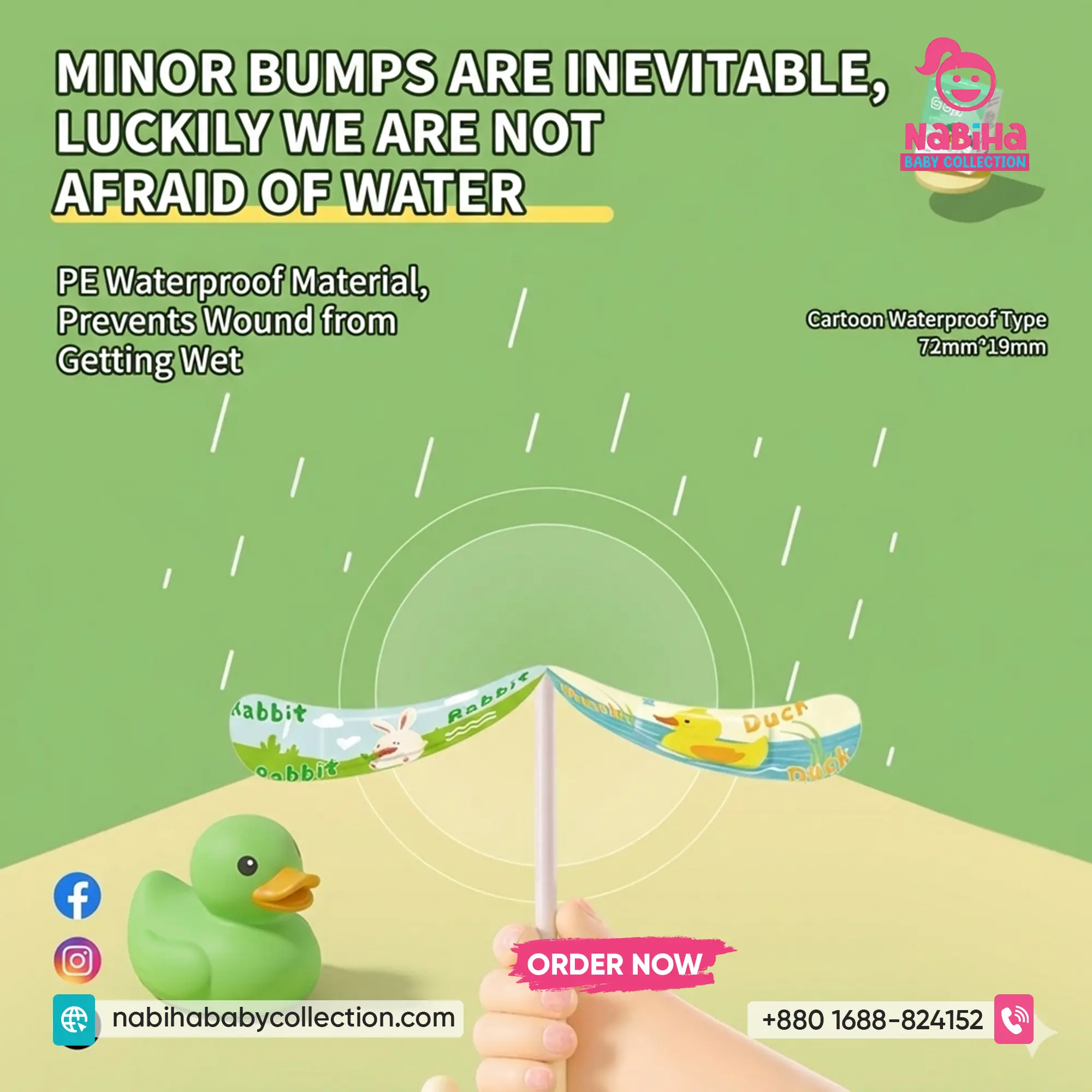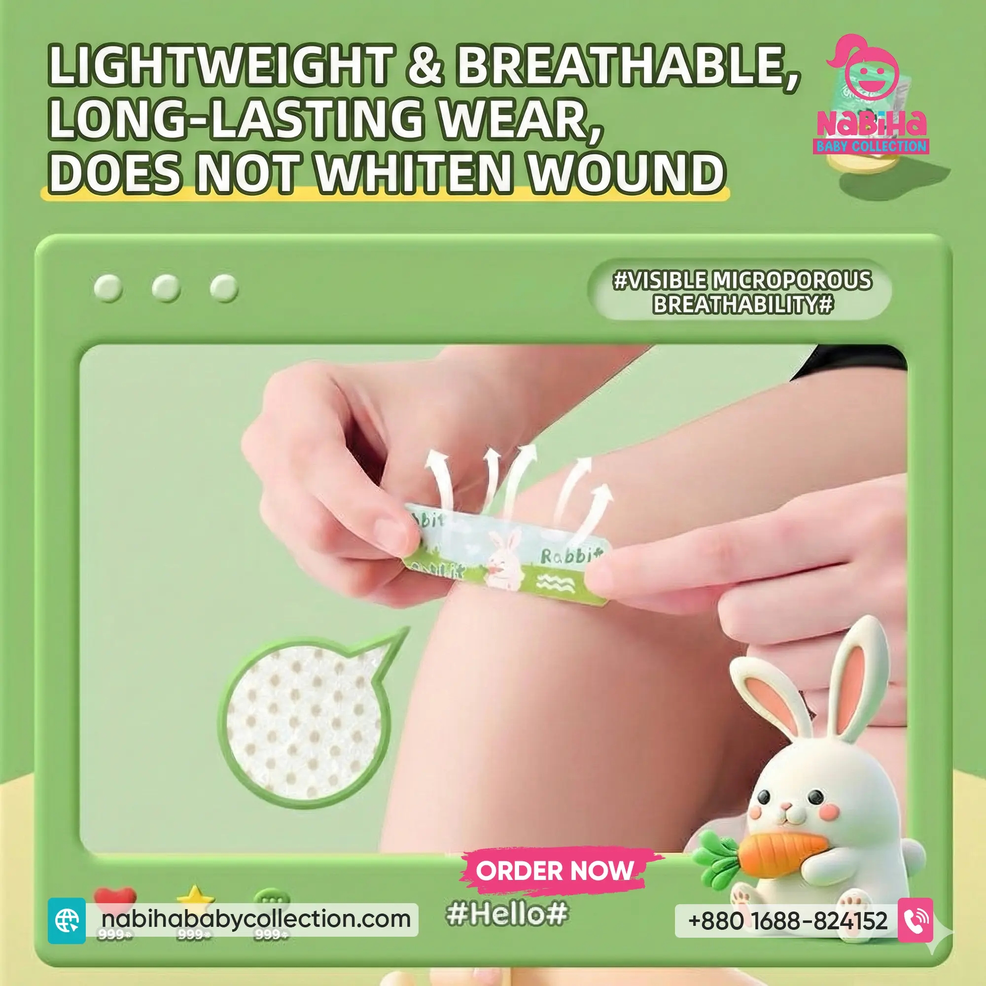 Waterproof Protection: এটি উন্নতমানের PE Waterproof মেটেরিয়াল দিয়ে তৈরি, যা পানি প্রতিরোধ করে। তাই গোসল বা সাঁতারের সময়ও ক্ষত থাকে সুরক্ষিত এবং শুকনো।