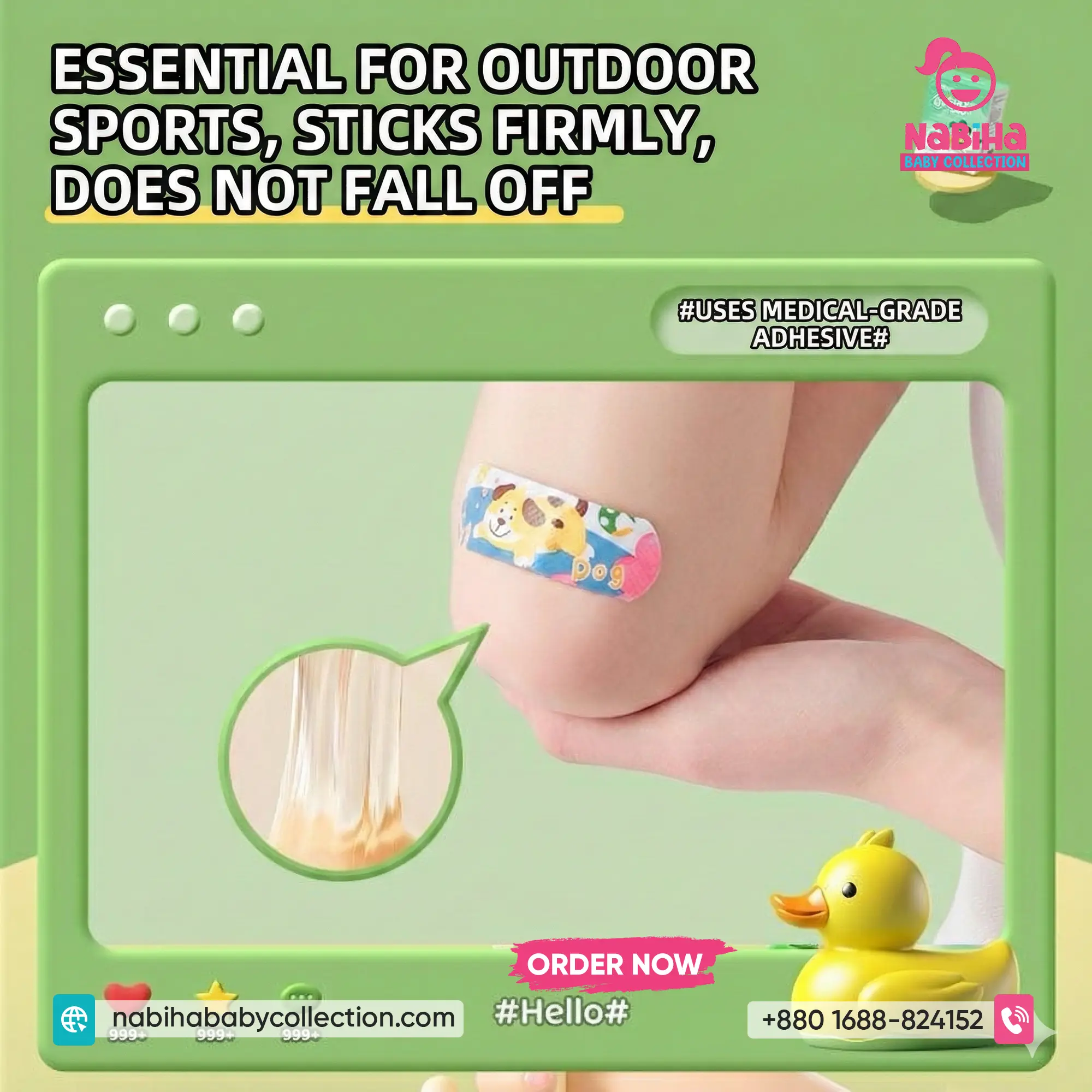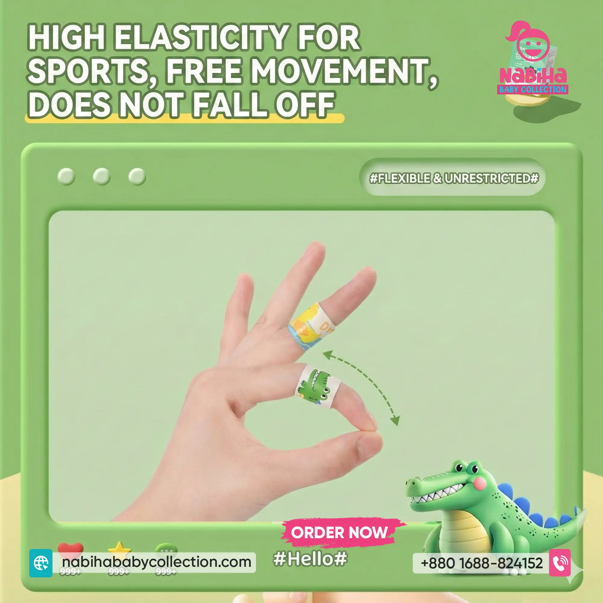 High Elasticity: এটি অত্যন্ত নমনীয় বা ইলাস্টিক, তাই আঙুল বা জয়েন্টে লাগালেও বাচ্চারা স্বাভাবিকভাবে নড়াচড়া করতে পারে, কোনো টান লাগে না।