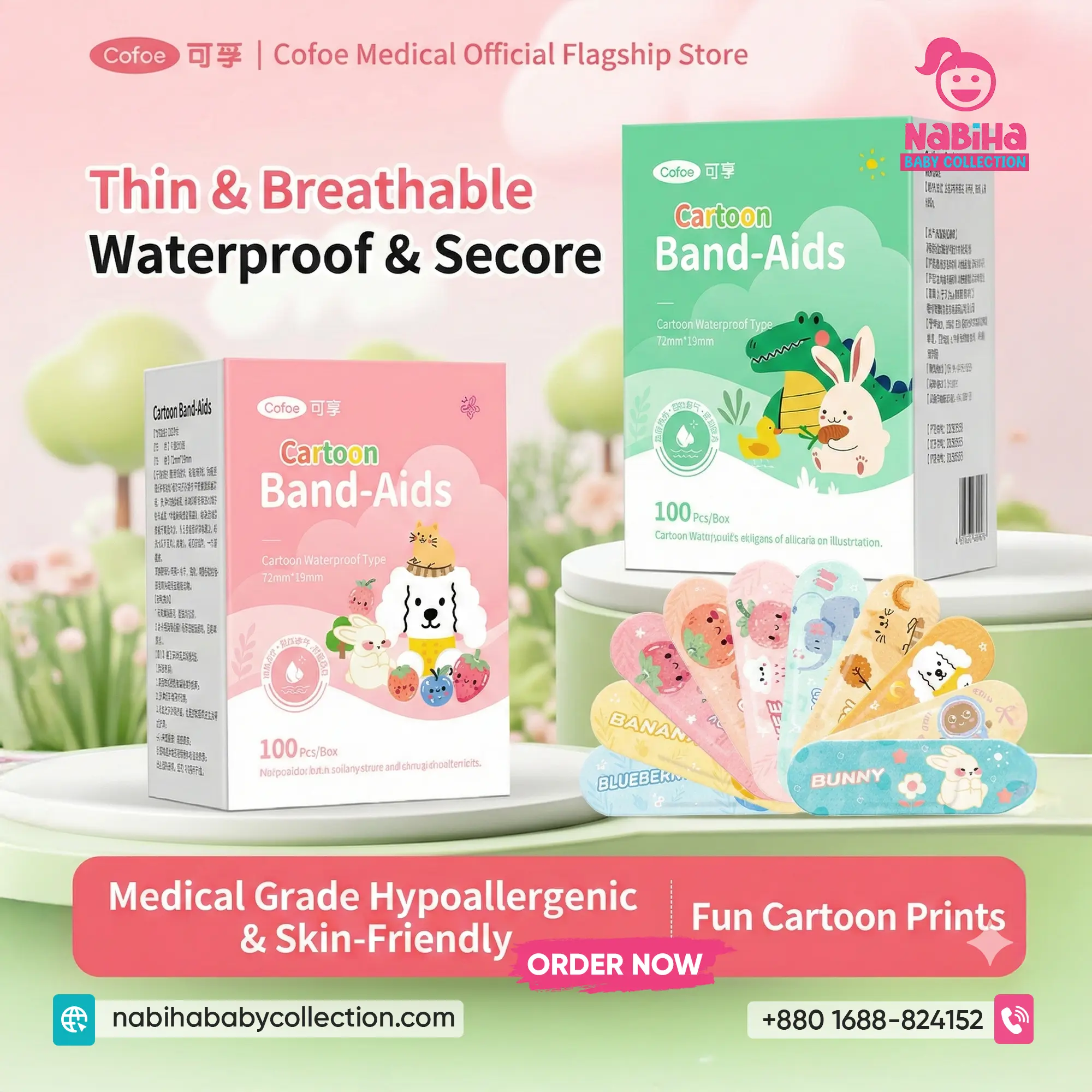 Product Overview: বাচ্চাদের খেলাধুলার সময় ছোটখাটো আঘাত বা ক্ষত থেকে সুরক্ষিত রাখতে Nabiha Baby Collection নিয়ে এলো Cofoe ব্র্যান্ডের ফরেস্ট অ্যানিমেল থিমের ব্যান্ডেজ। এর কার্টুন ডিজাইনগুলো বাচ্চাদের কান্না থামিয়ে মুখে হাসি ফোটায়। এটি সম্পূর্ণ ওয়াটারপ্রুফ এবং ইলাস্টিক হওয়ায় বাচ্চারা এটি পরে অনায়াসেই খেলাধুলা বা গোসল করতে পারে।