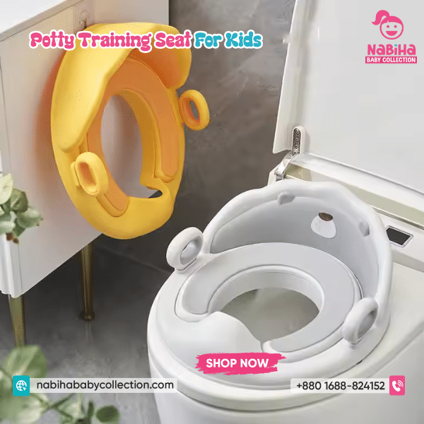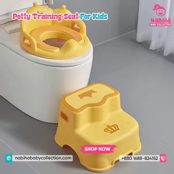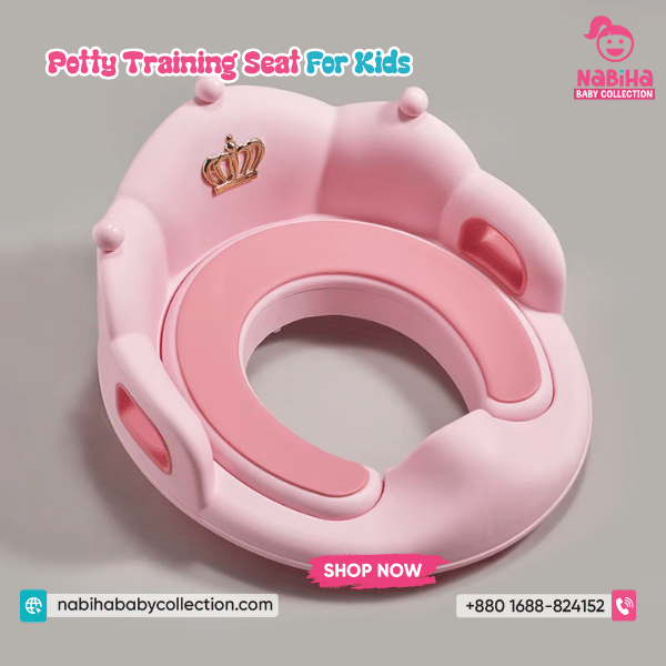 “Hi Nabiha Baby Collection, ami ‘Crown Toilet Training Seat For Kids’ nite chai. Color: [Pink/Yellow], Qty: 1. Delivery: [Dhaka/Outside]. Amar naam—, phone—, address—. Note: Dhaka ৳70 | Outside ৳120. Rider-er samne parts/fit check korbo. Hygiene policy bujhte perechi.