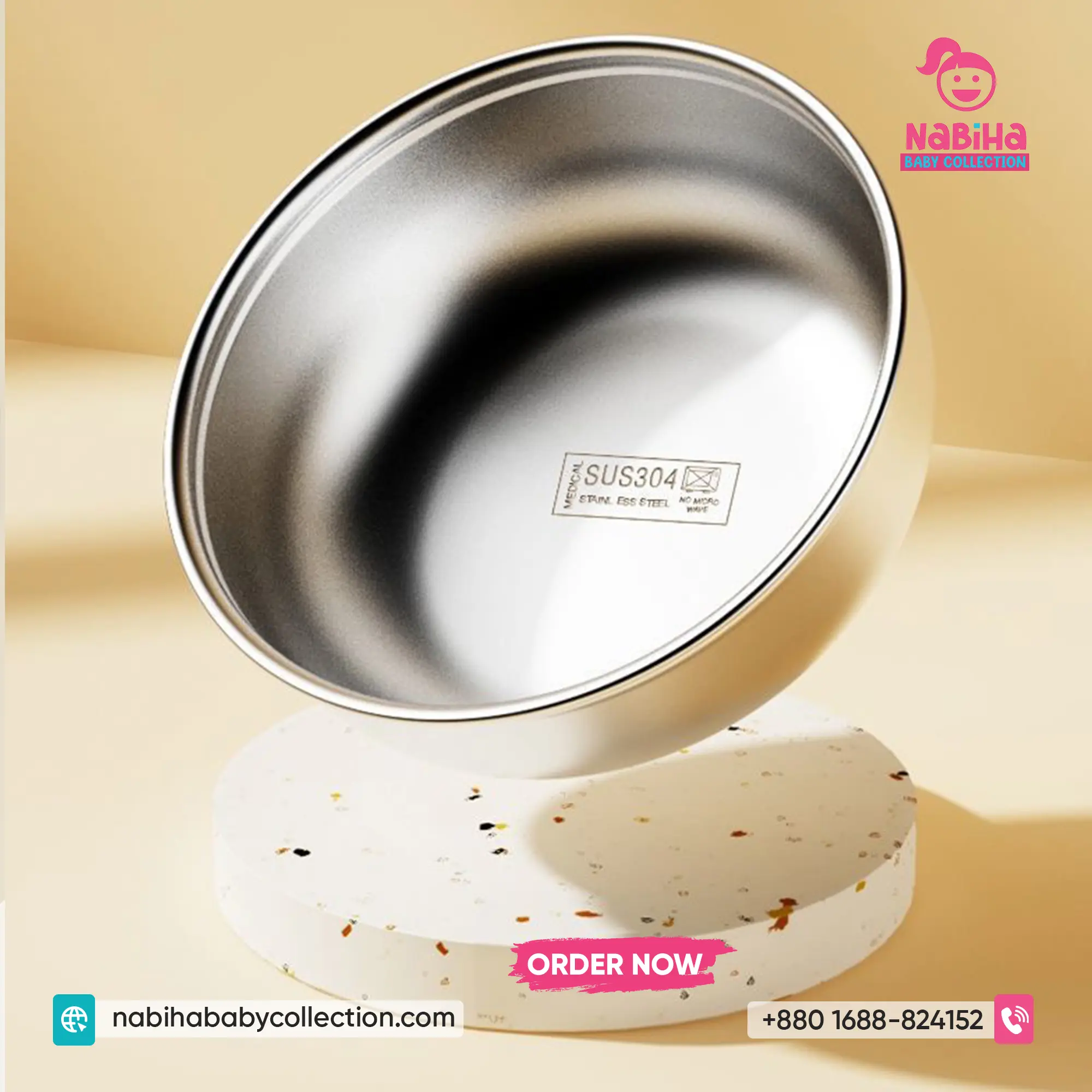 Premium Material: বাটির ভেতরের অংশ উন্নতমানের SUS304/316L Stainless Steel দিয়ে তৈরি, যা সম্পূর্ণ ফুড গ্রেড, মরিচা-রোধী এবং বাচ্চার স্বাস্থ্যের জন্য নিরাপদ।