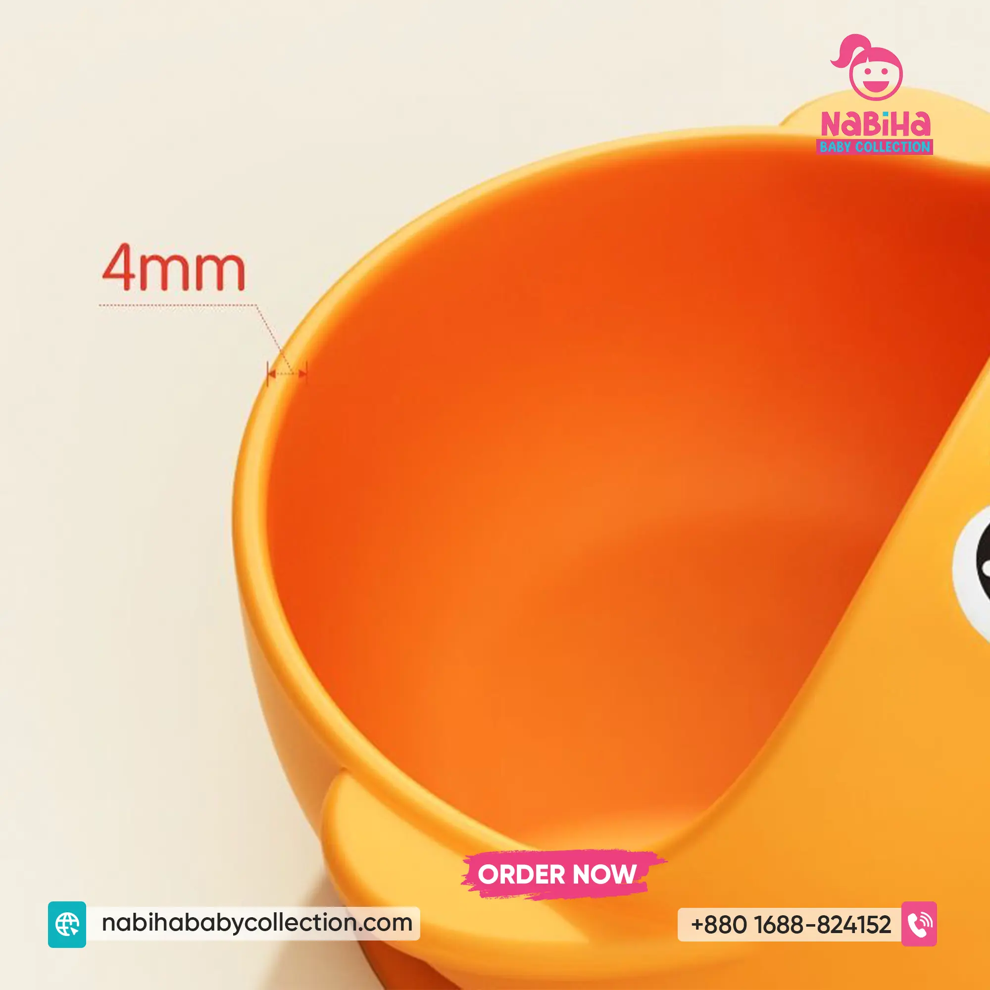 Strong Suction Base: এর নিচে সিলিকন সাকশন বেস রয়েছে, যা টেবিলের সাথে বাটিটিকে শক্তভাবে আটকে রাখে, ফলে বাচ্চারা সহজে বাটি উল্টাতে পারে না।