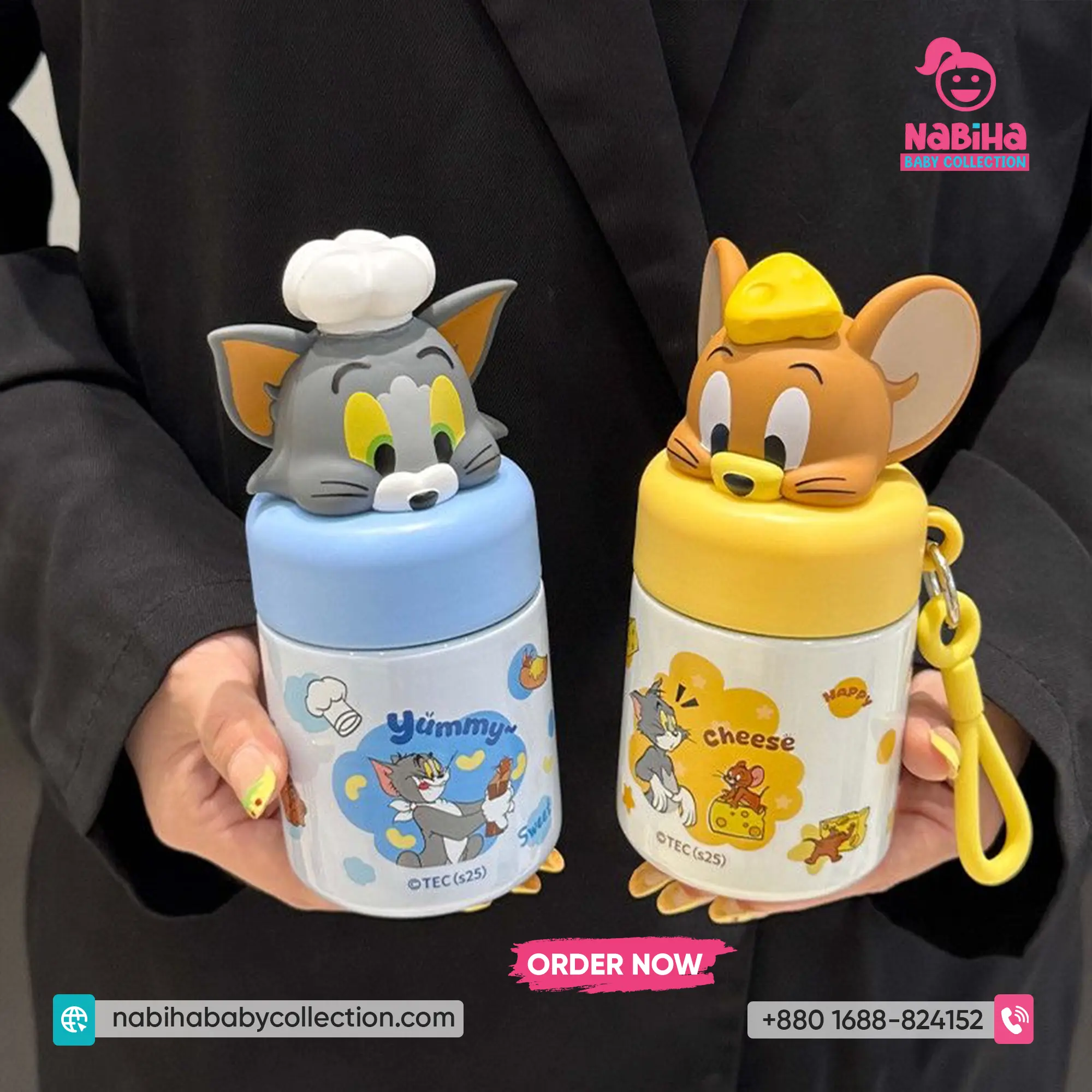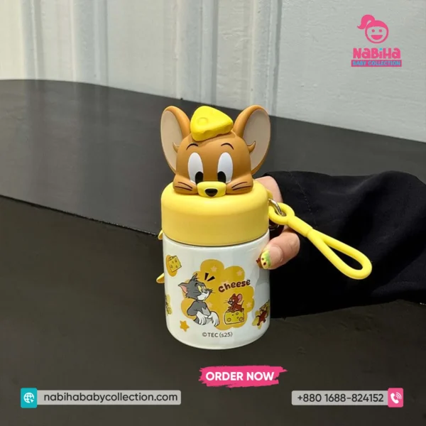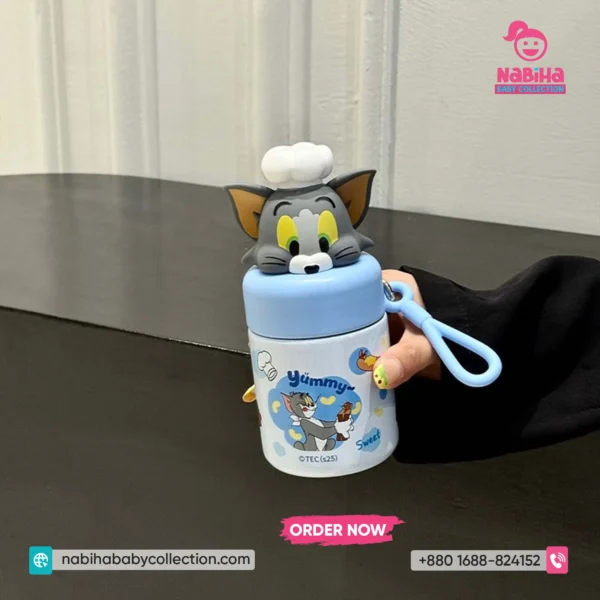 Product Overview: ছোট সোনামণি এবং টম অ্যান্ড জেরি ফ্যানদের জন্য Nabiha Baby Collection নিয়ে এলো প্রিমিয়াম কোয়ালিটির মিনি থার্মোস! ২০০ এমএল (200ml) ক্যাপাসিটির এই বোতলটি আকারে ছোট, তাই বাচ্চাদের স্কুল ব্যাগ বা মায়ের হ্যান্ডব্যাগে খুব সহজেই জায়গা করে নেয়। এর ঢাকনায় টম এবং জেরির বড় থ্রি-ডি হেড বসানো, যা দেখলেই মন ভালো হয়ে যায়। এটি সাধারণ স্টিলের চেয়েও উন্নত SUS 316 গ্রেডের স্টেইনলেস স্টিল দিয়ে তৈরি, যা বাচ্চার স্বাস্থ্যের জন্য সর্বোচ্চ নিরাপত্তা নিশ্চিত করে।