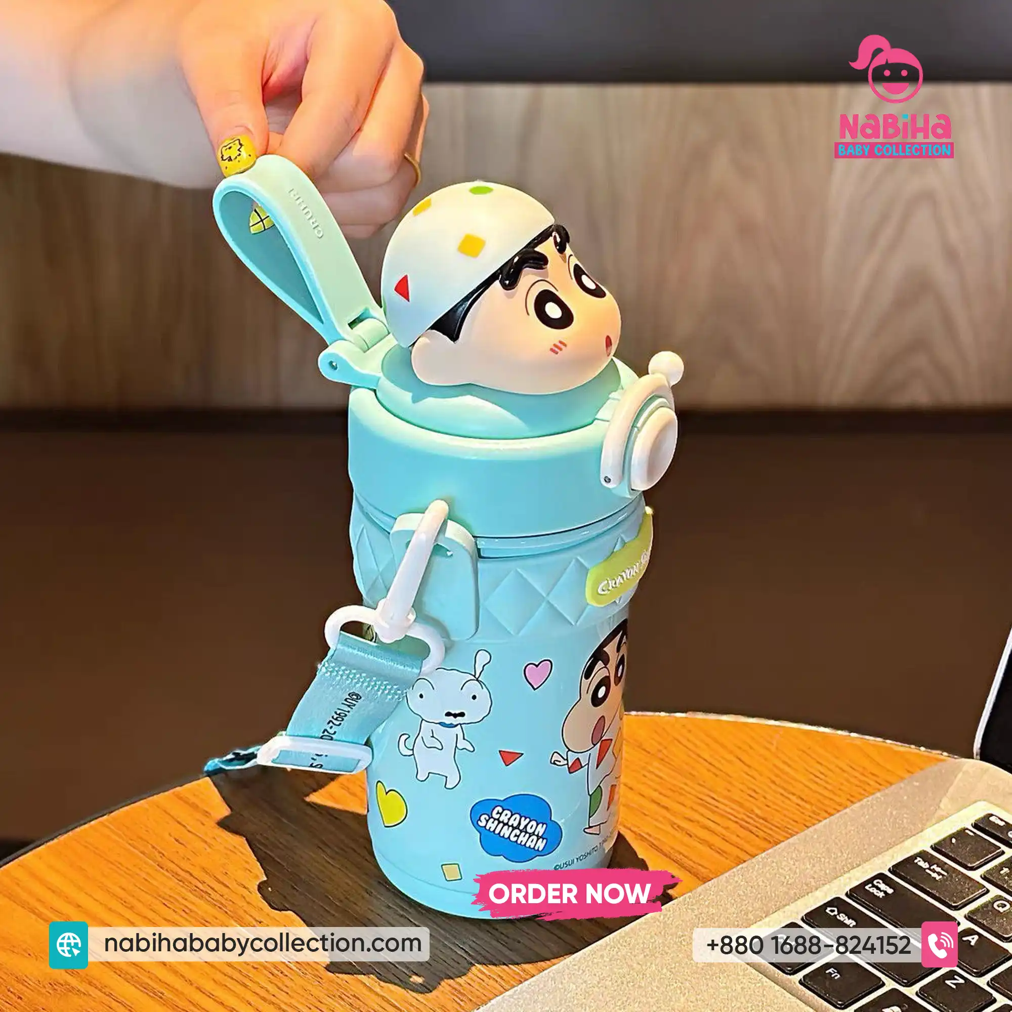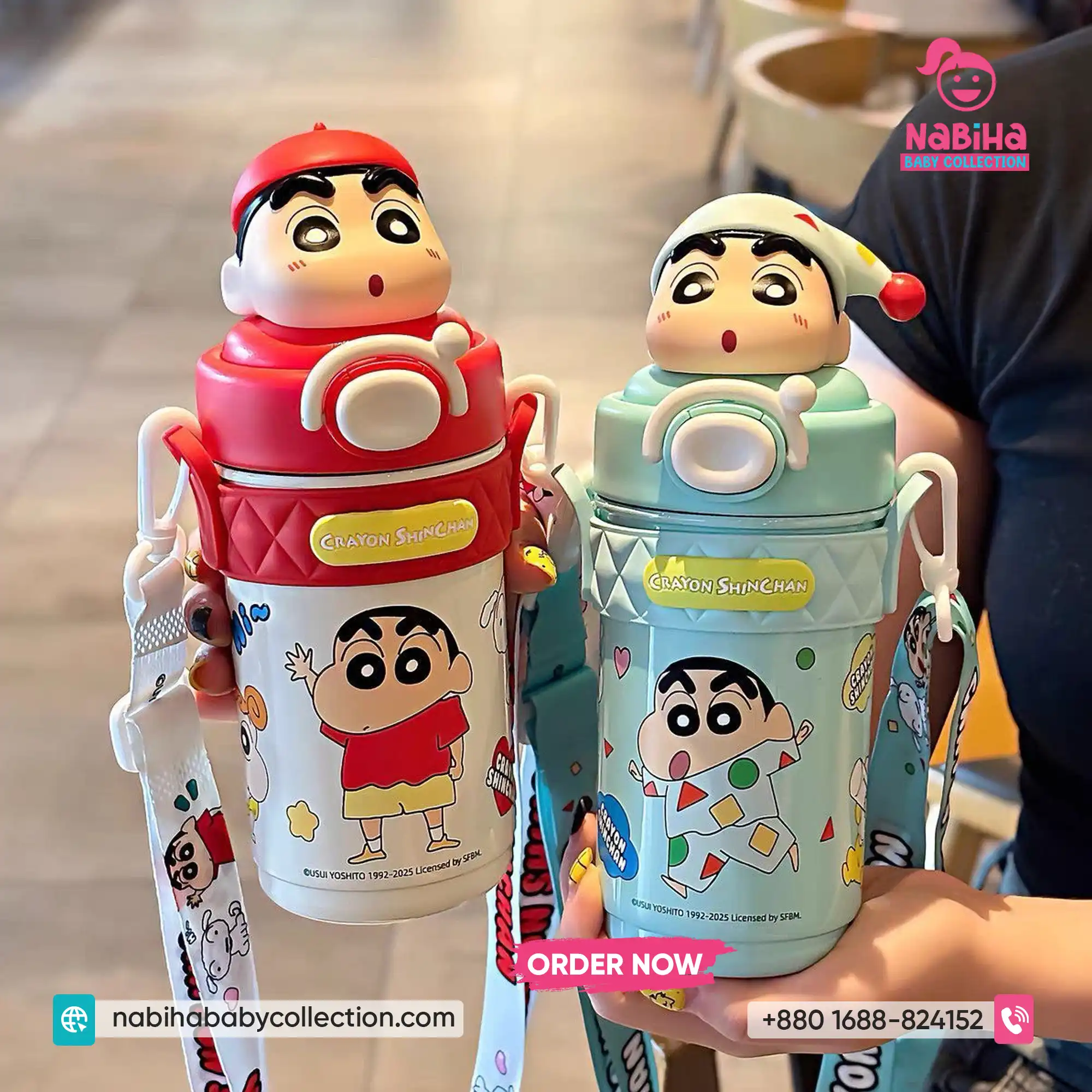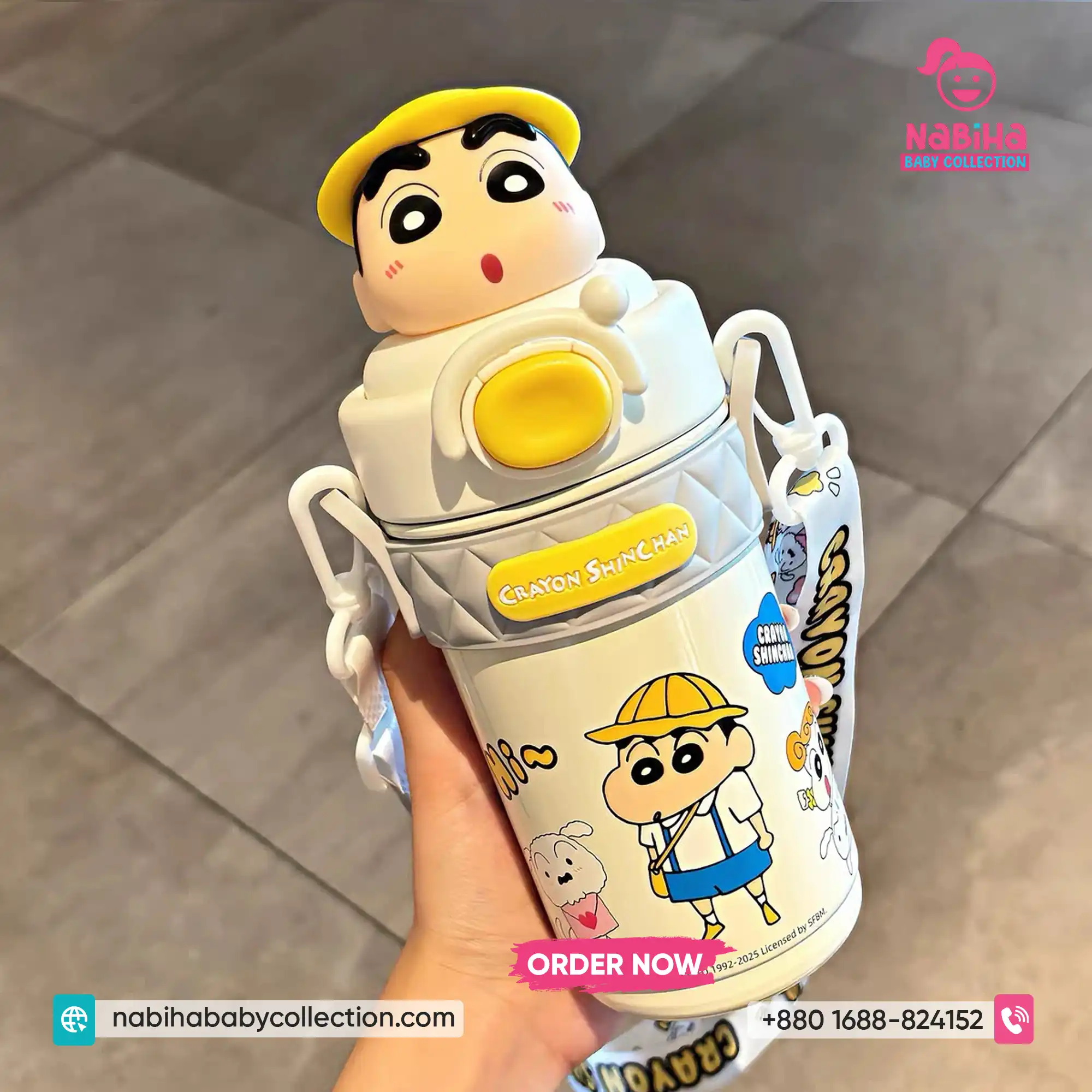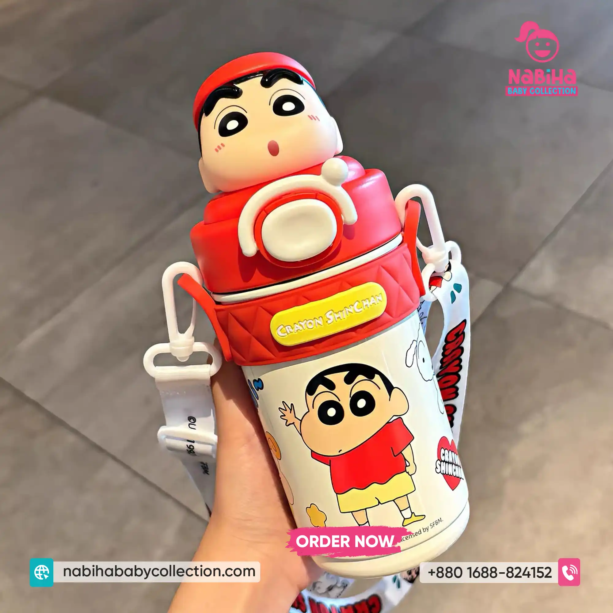 Product Overview: ক্রেয়ন শিন-চ্যান ফ্যানদের জন্য Nabiha Baby Collection নিয়ে এলো আরও একটি দারুণ কালেকশন! ৪২০ এমএল (420ml) ক্যাপাসিটির এই থার্মোস বোতলগুলোর সবচেয়ে বড় আকর্ষণ হলো এর ঢাকনায় থাকা শিন-চ্যানের ভিন্ন ভিন্ন মজার এক্সপ্রেশন এবং কস্টিউমের থ্রি-ডি পুতুল। এর সাথে থাকা কিউট প্রিন্টেড স্ট্র্যাপ এবং চমৎকার বক্স প্যাকেজিং একে বাচ্চাদের স্কুল বা গিফটের জন্য একদম পারফেক্ট করে তুলেছে।