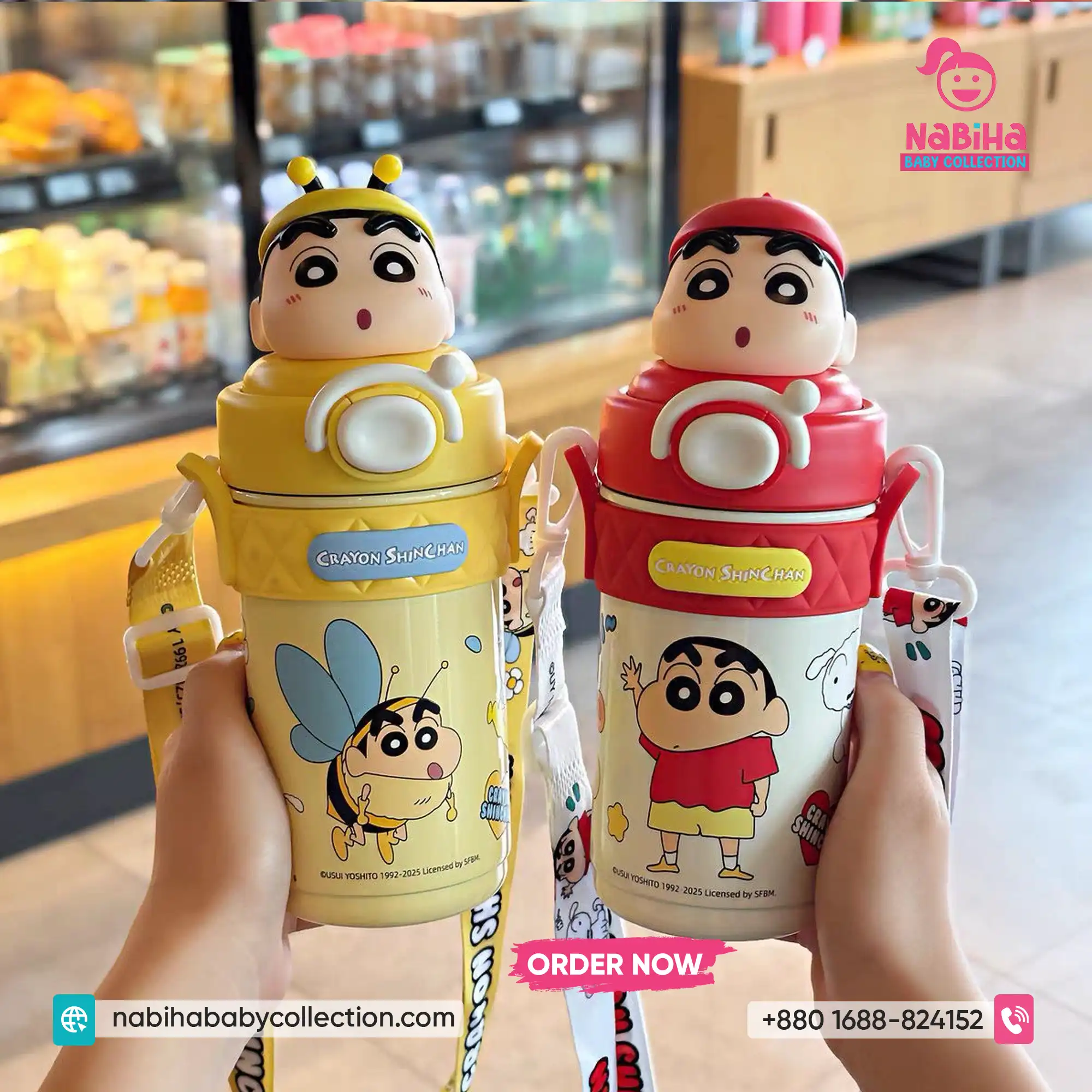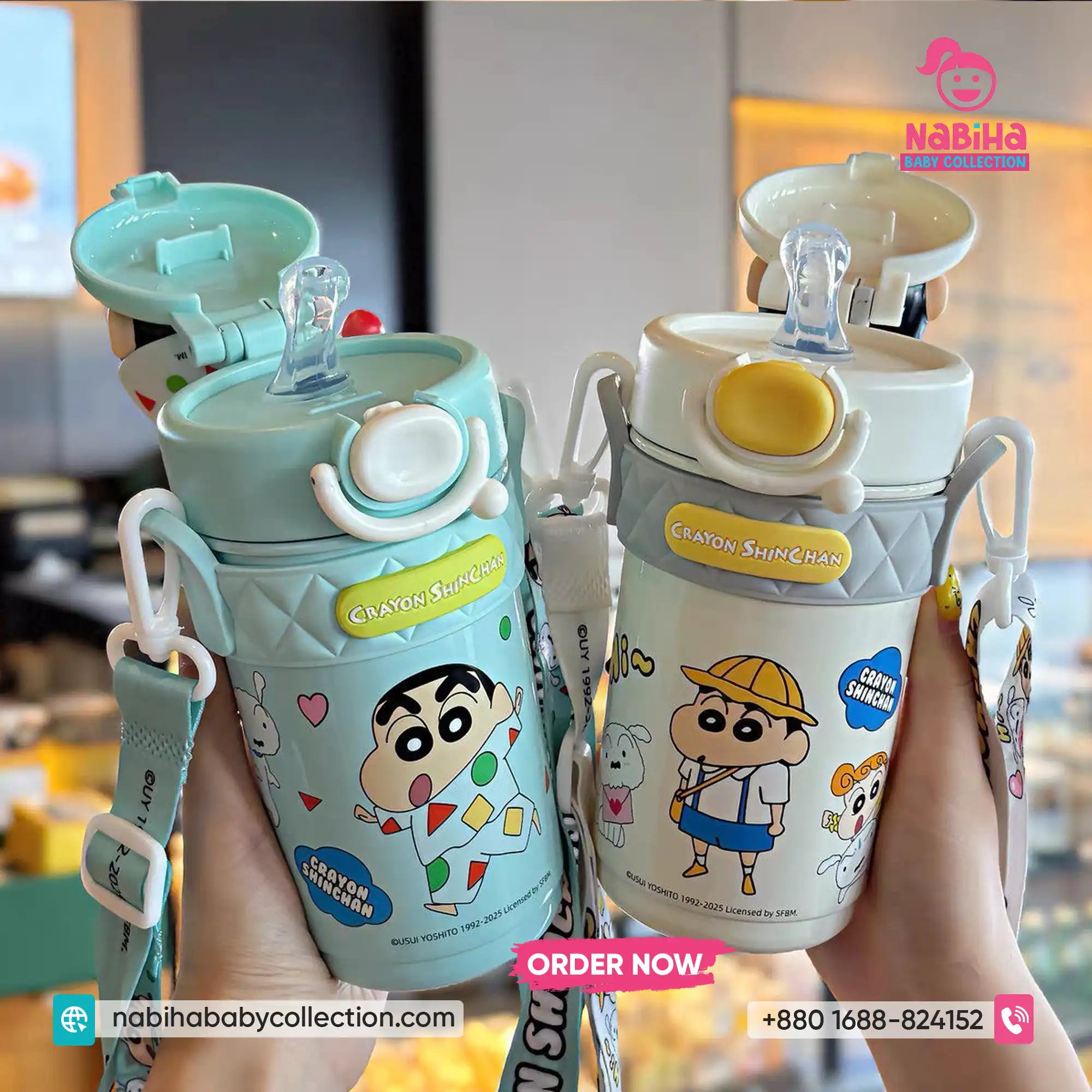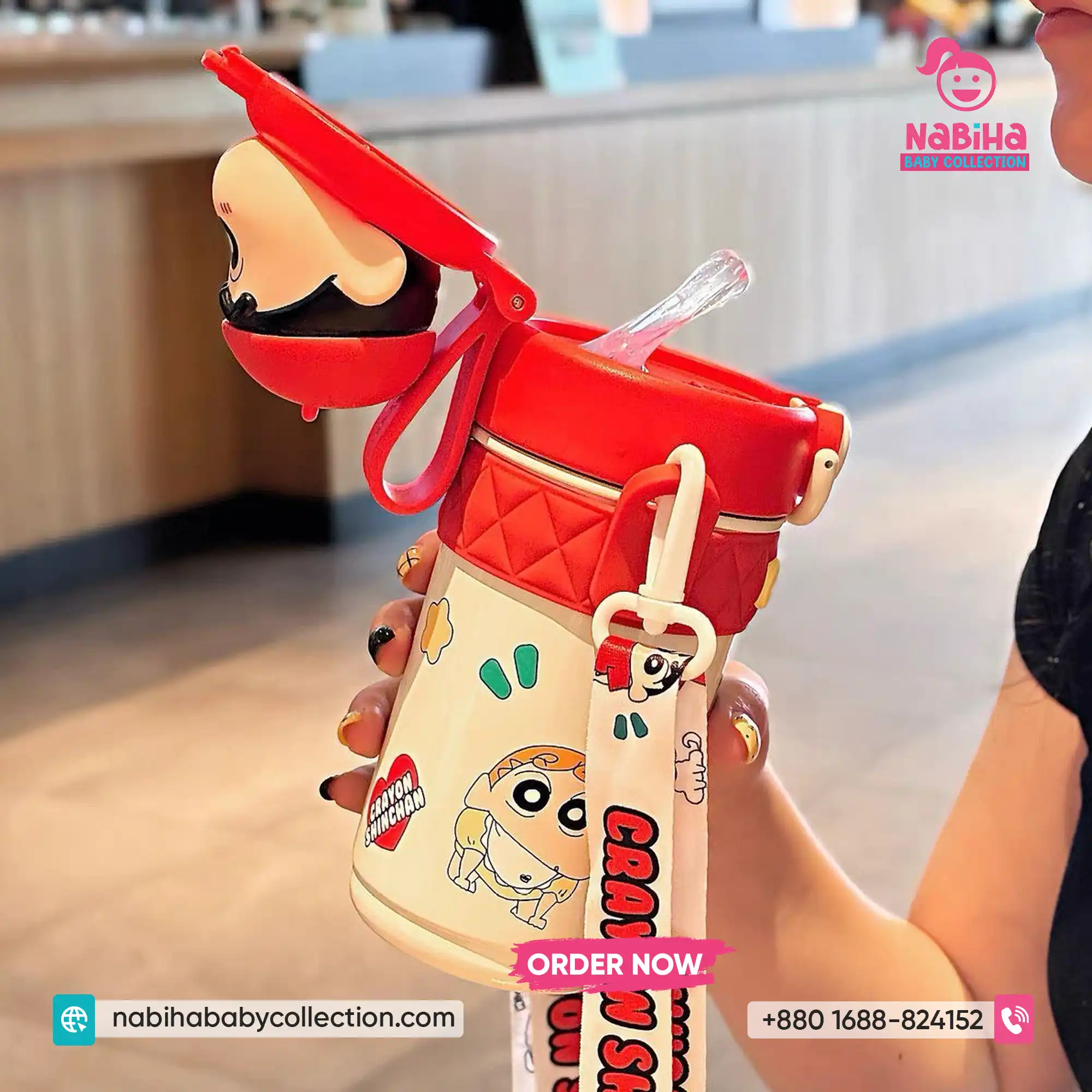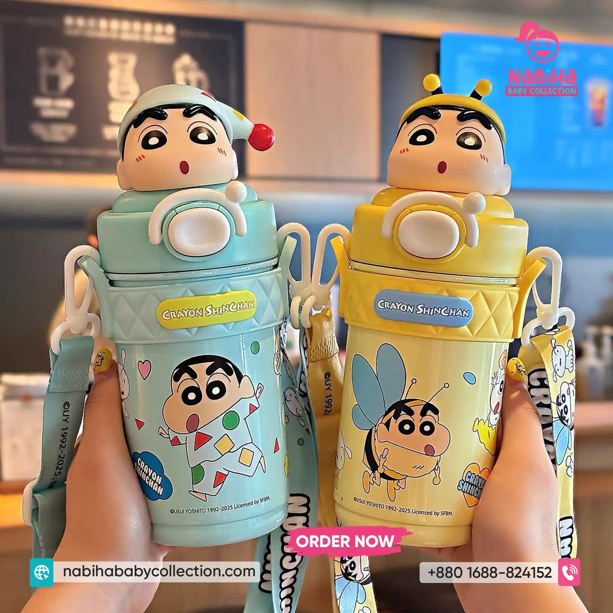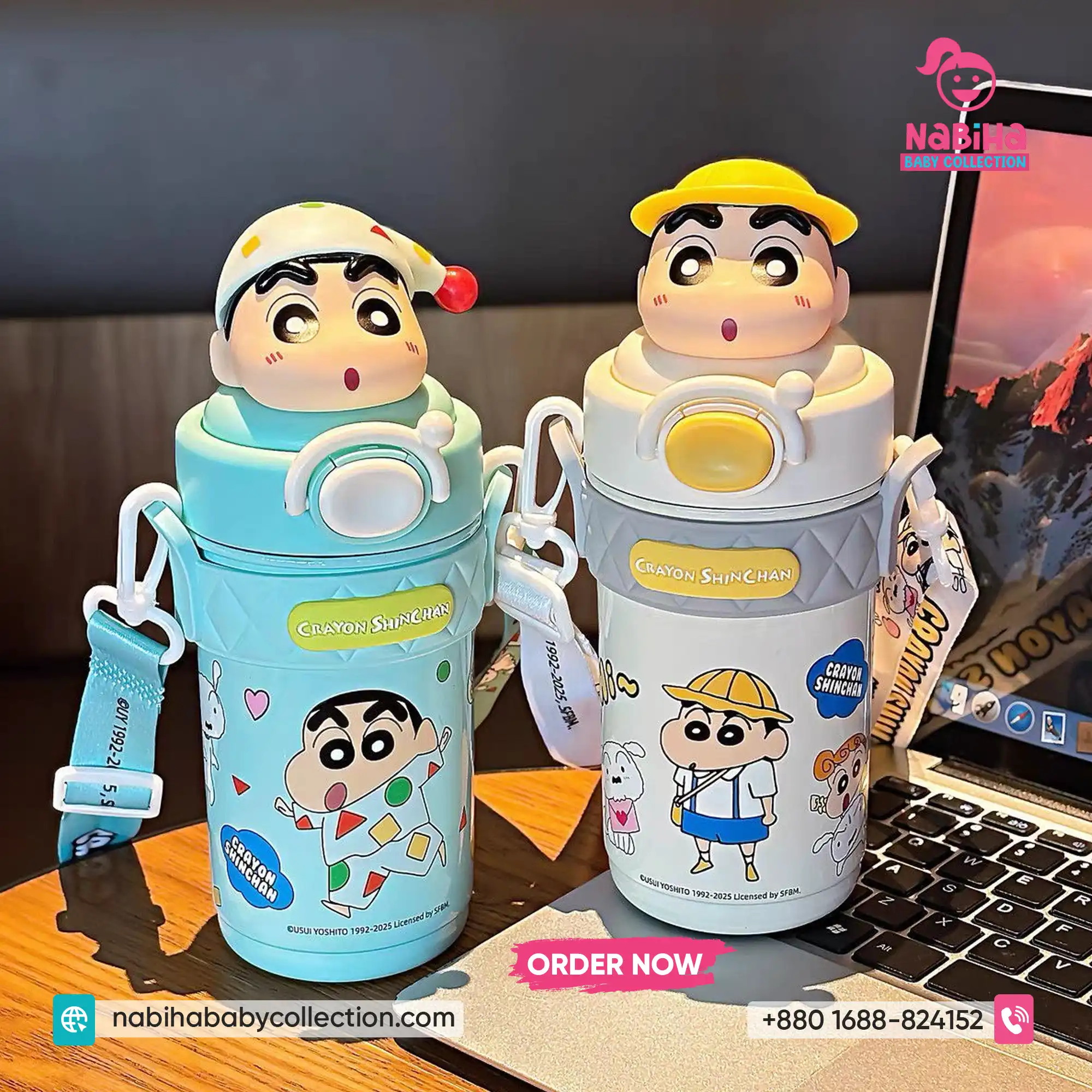 Product Overview: ক্রেয়ন শিন-চ্যান ফ্যানদের জন্য Nabiha Baby Collection নিয়ে এলো আরও একটি দারুণ কালেকশন! ৪২০ এমএল (420ml) ক্যাপাসিটির এই থার্মোস বোতলগুলোর সবচেয়ে বড় আকর্ষণ হলো এর ঢাকনায় থাকা শিন-চ্যানের ভিন্ন ভিন্ন মজার এক্সপ্রেশন এবং কস্টিউমের থ্রি-ডি পুতুল। এর সাথে থাকা কিউট প্রিন্টেড স্ট্র্যাপ এবং চমৎকার বক্স প্যাকেজিং একে বাচ্চাদের স্কুল বা গিফটের জন্য একদম পারফেক্ট করে তুলেছে।