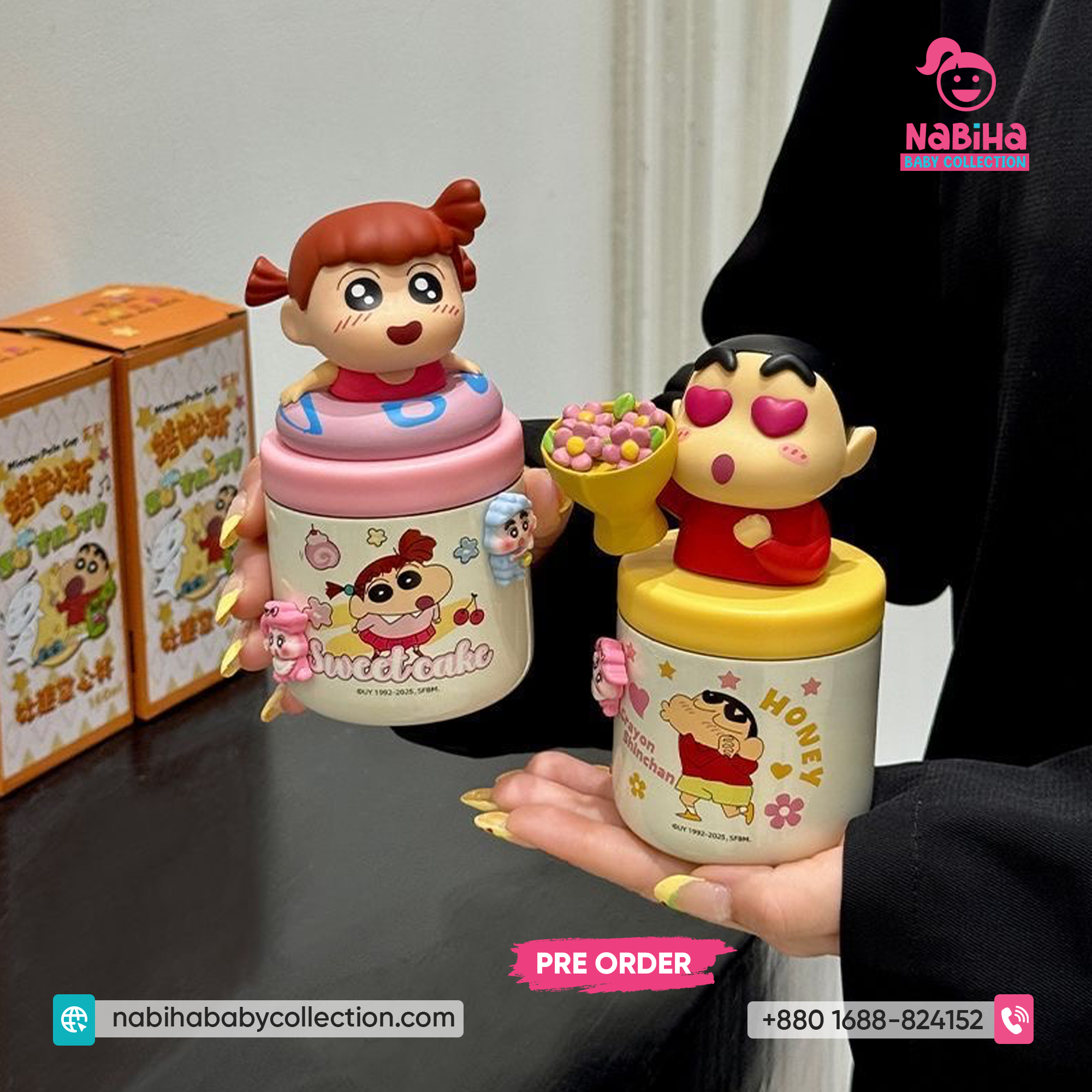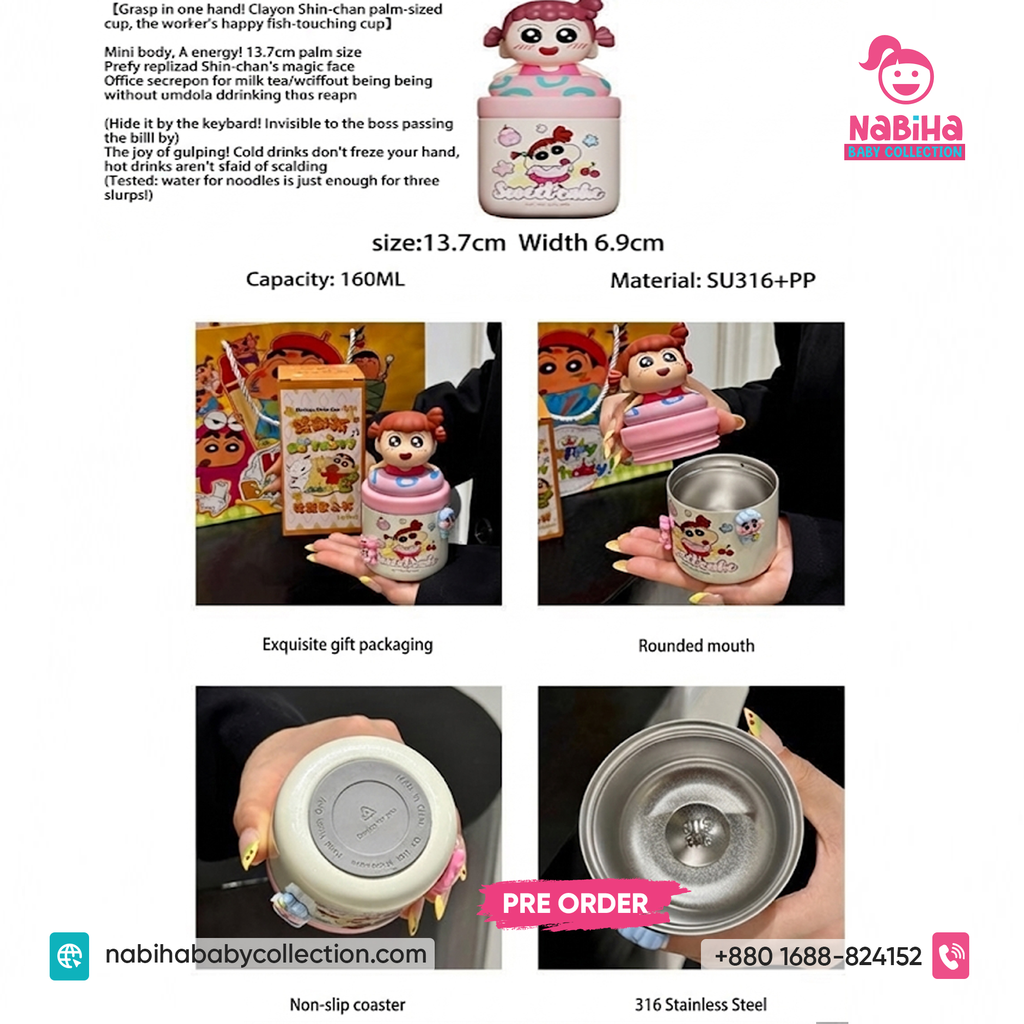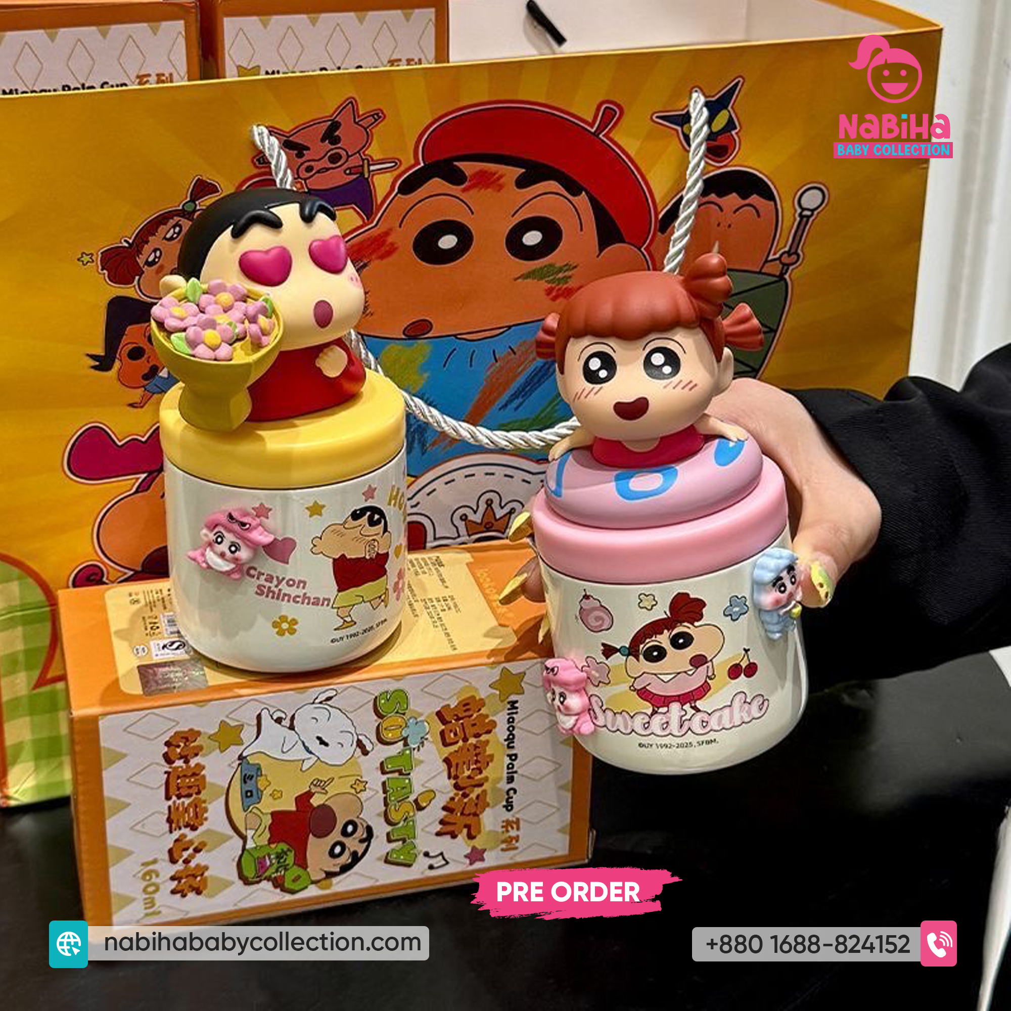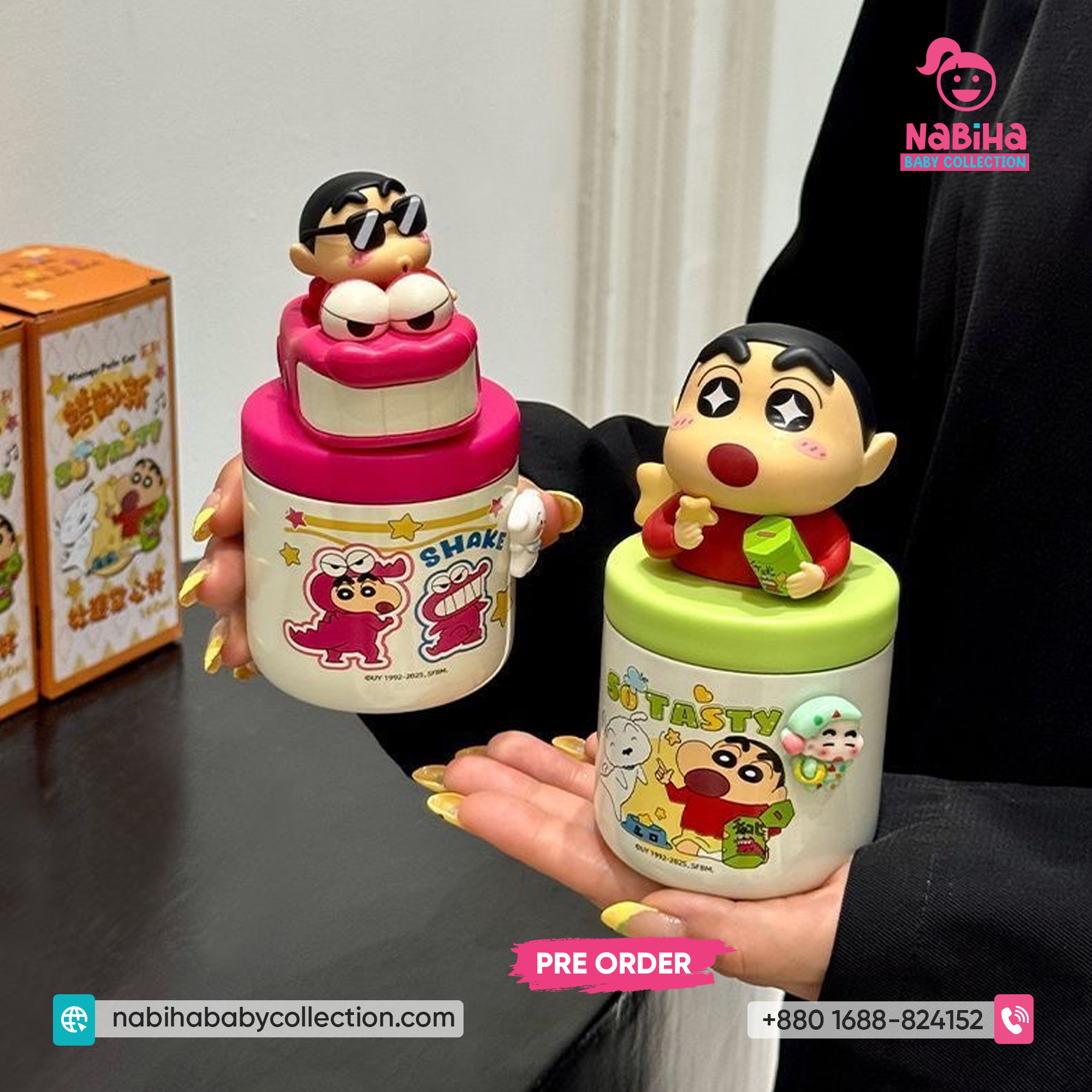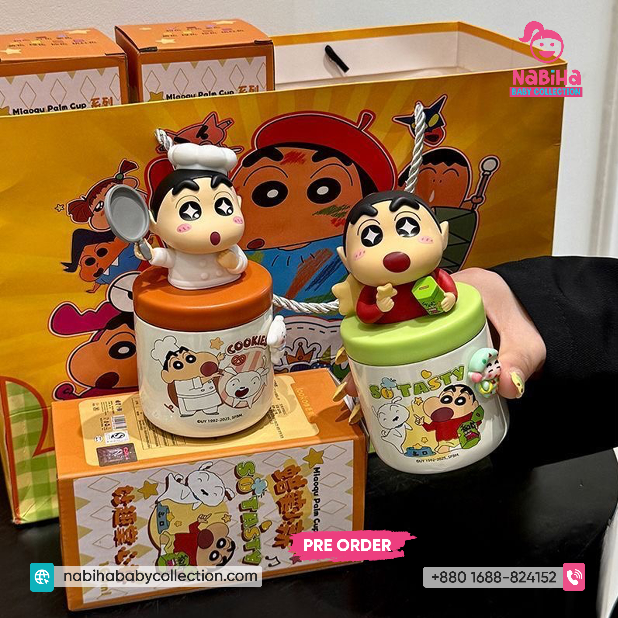 Product Overview: ছোট্ট সোনামণি বা শৌখিন বড়দের জন্য Nabiha Baby Collection নিয়ে এলো কিউট Crayon Shin-chan মিনি পাম কাপ! এটি আকারে ছোট (Palm Sized), তাই হাতে ধরা খুব সহজ এবং ওজনেও হালকা। প্রিমিয়াম কোয়ালিটি এবং সুন্দর প্যাকেজিংয়ের কারণে এটি গিফট হিসেবেও চমৎকার।