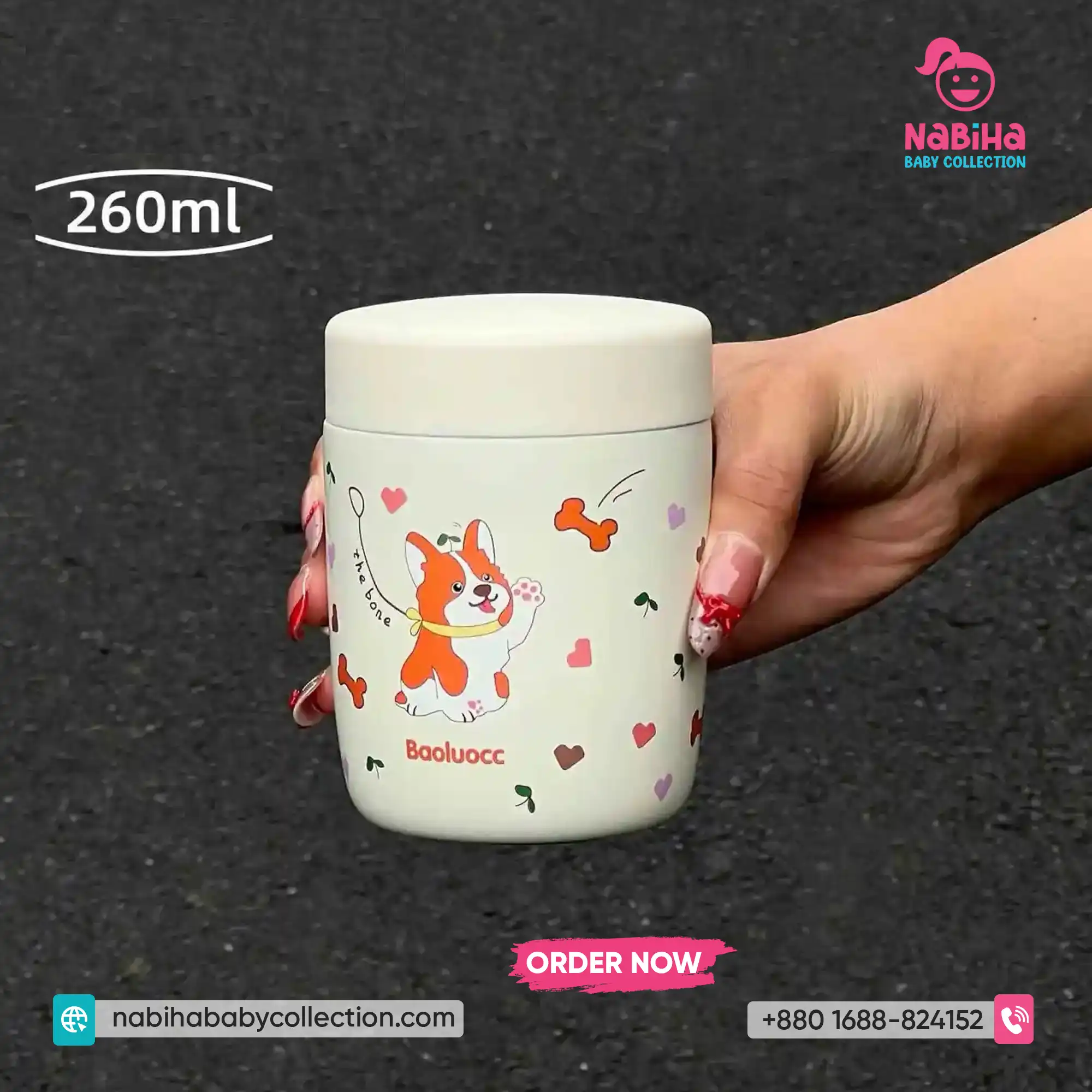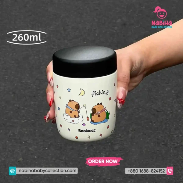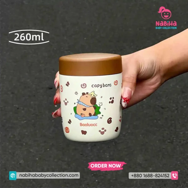 Compact Capacity: এর ধারণক্ষমতা ২৬০ এমএল (260ml), যা এক কাপ চা, কফি বা বাচ্চার অল্প পরিমাণ খাবার নেওয়ার জন্য একদম পারফেক্ট সাইজ।